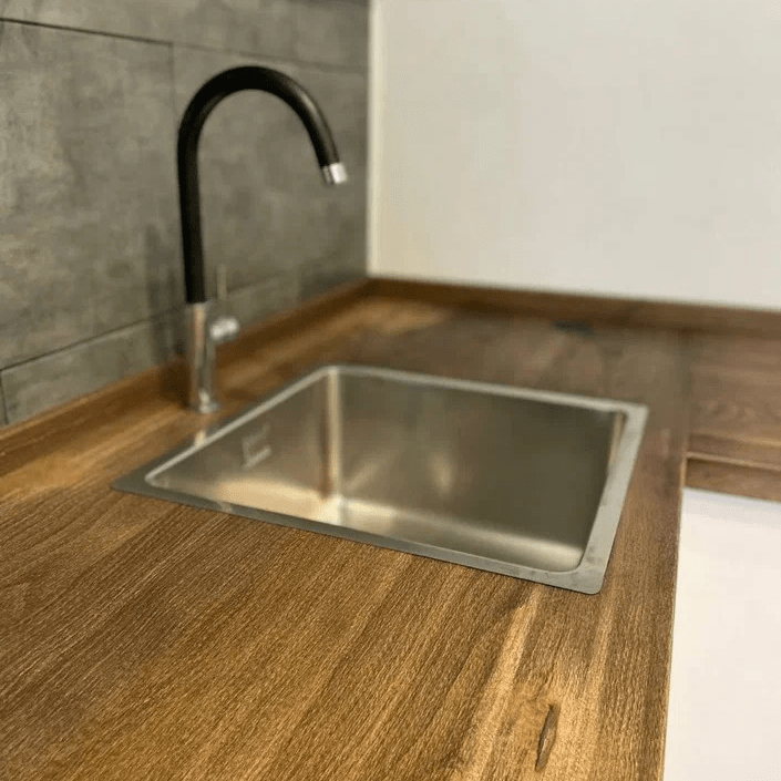 Мы сами подбираем сырьевые материалы, делаем мебельные щиты, обрабатываем столешницы, делаем вырезы и наносим защитные покрытия